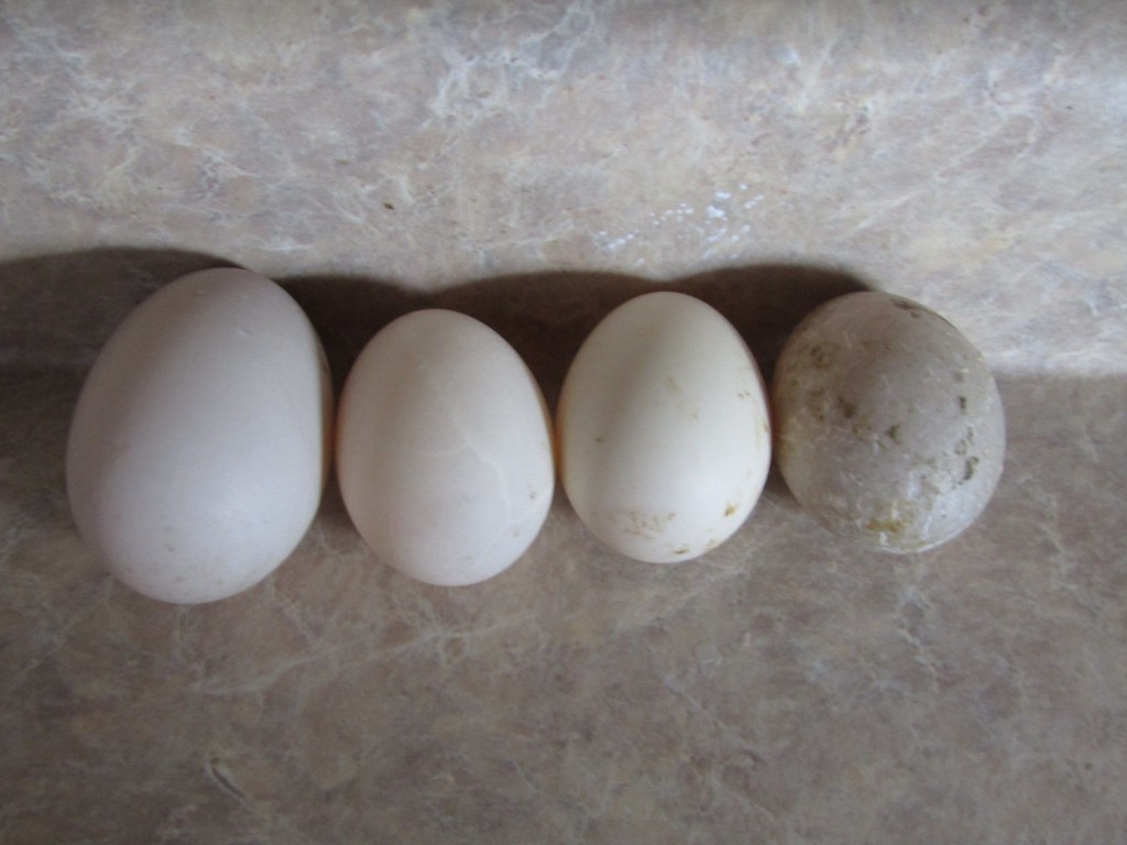 If you were wondering, duck eggs taste just the same as chicken eggs, the shell is just a bit harder to break open.