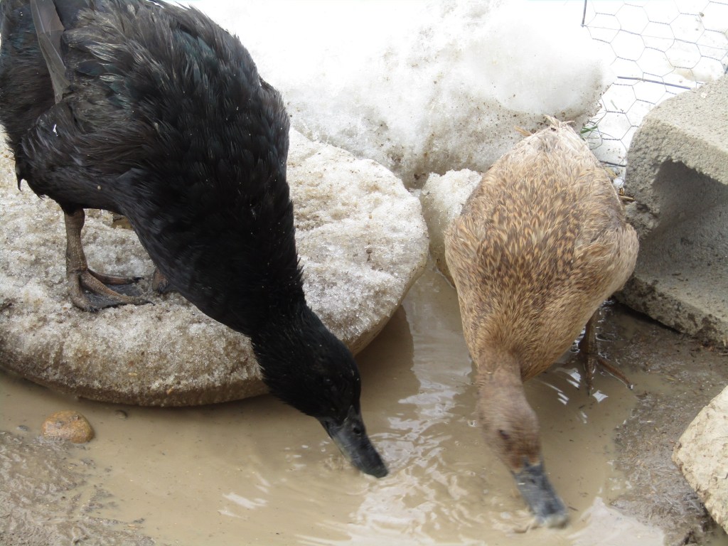 The ducks LOVE water so much that during the winter they get a bit hard to take care of because all the water always freezes. So, every two days we go out to their coop and de-thaw and refill four huge water containers for the ducks ( Also the chickens ).